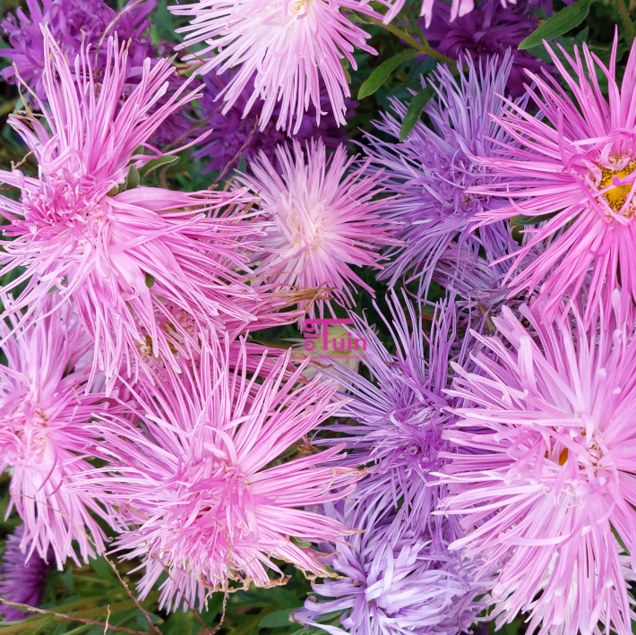 Een prachtige mix van eenjarige straalbloem asters in allerlei warme pasteltinten. De bloemen zijn vanuit het hart bezet met buisvormige, gerolde bloemblaadjes. Vanwege de fijne bloemblaadjes worden ze ook wel 'Naaldasters' genoemd. Geschikt voor in perken, borders en als snijbloemen.